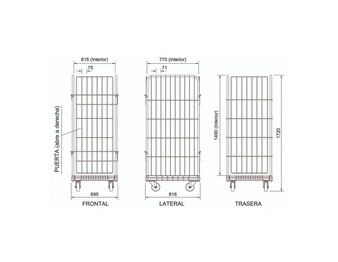 Roll Container multi-puerta, su diseño reducido lo convierte en una solución ideal dentro de su gama, su posibilidad de 1 o 2 puertas, lo convierte en una gran solución logística, con posibilidad de adquirir niveles adicionales interiores.
