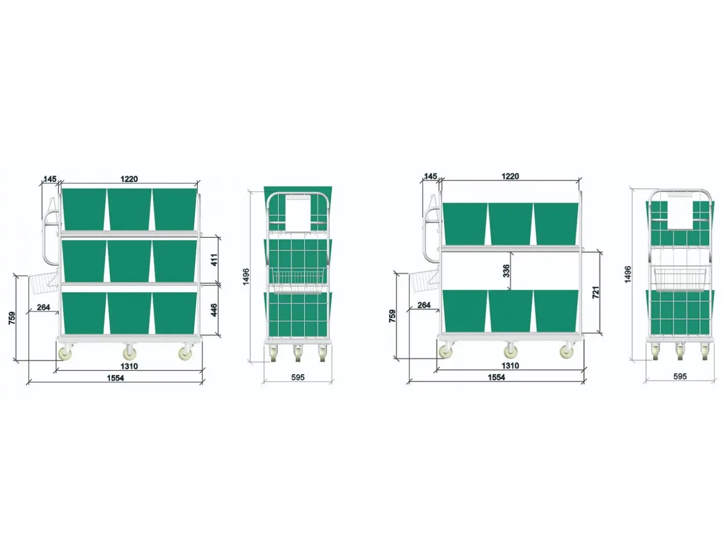 - 1.554 x 595 x 1.496 mm.